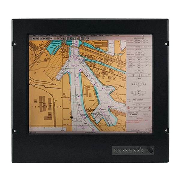 Marine Display feature-rich I/O connectivity consists of one VGA, one DVI-D, one Composite, one S-Video, two COM ports. Easy to integrate into existing marine equipment.